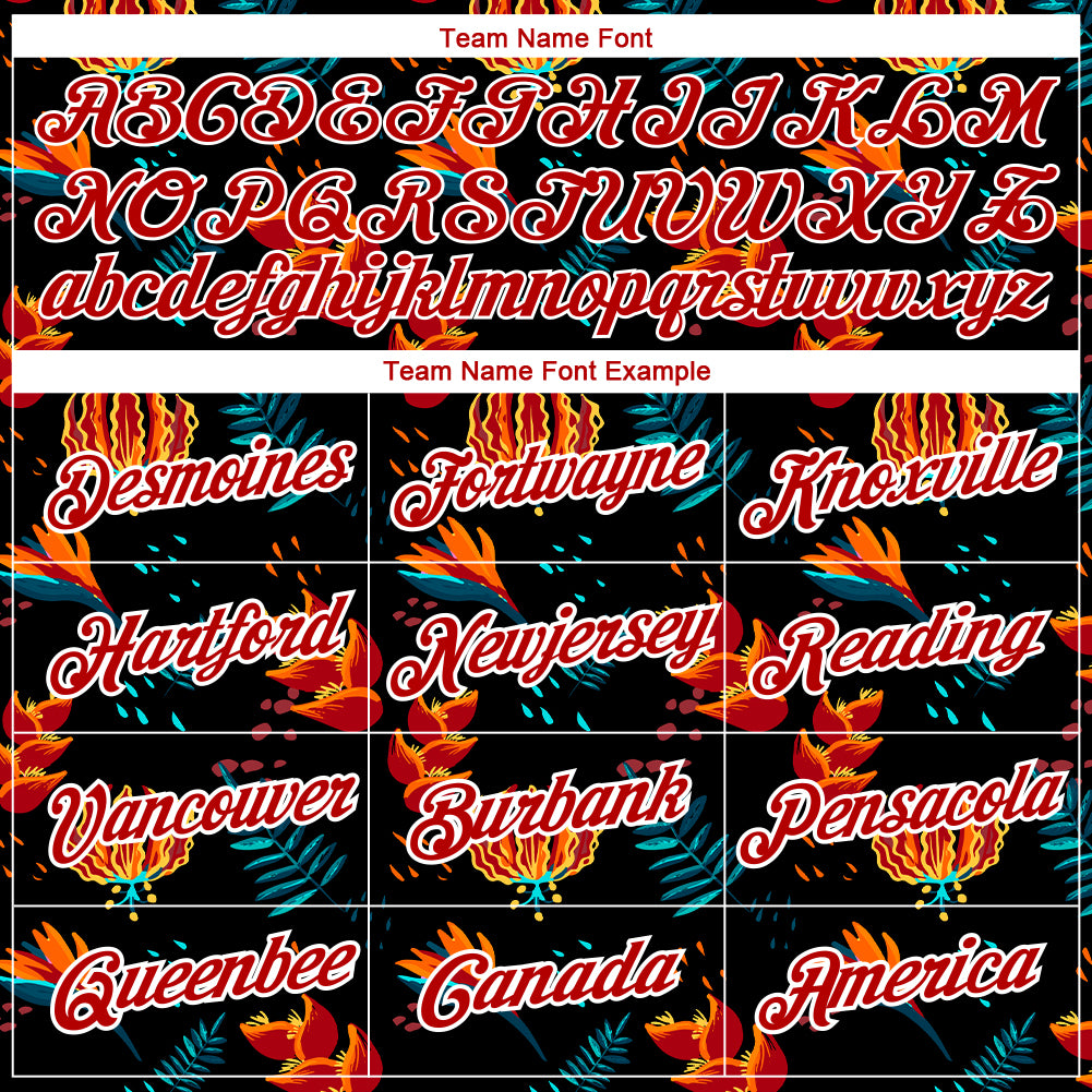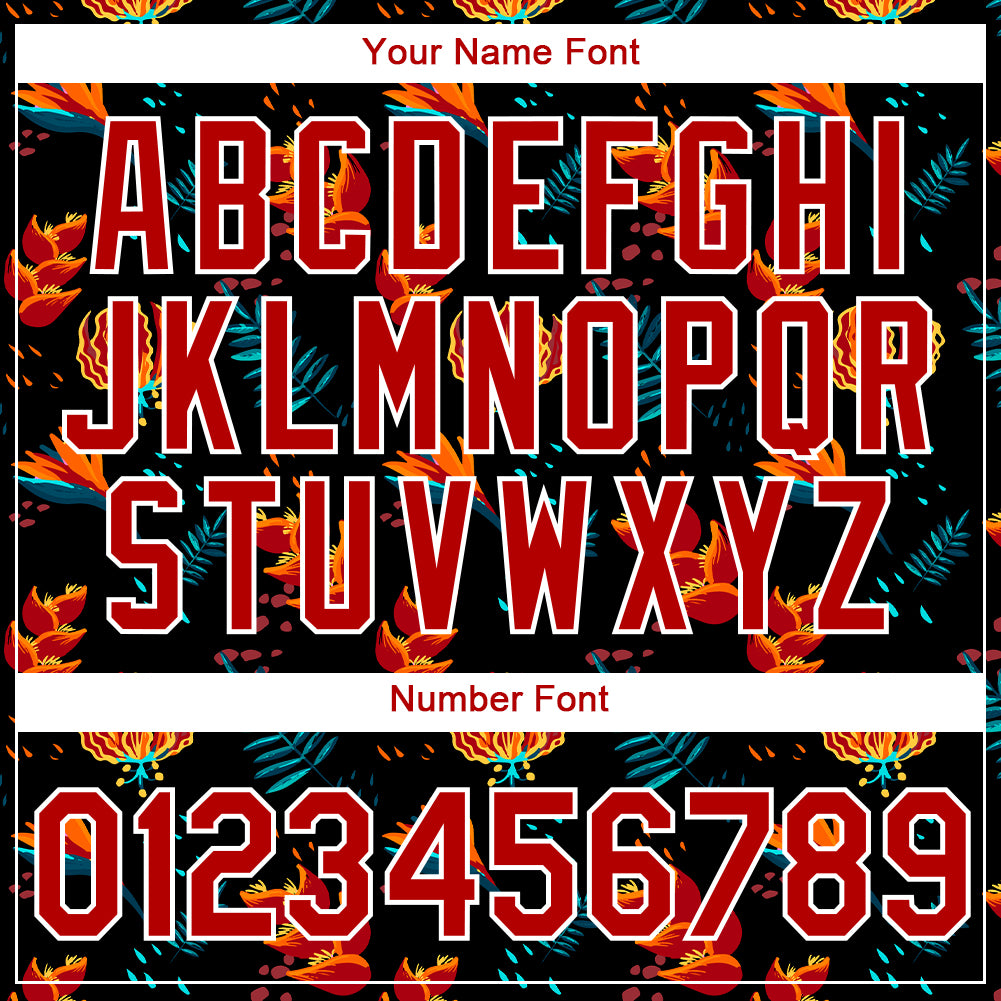 Custom Black Red-White 3D Pattern Design Tropical Hawaii Flower Performance T-Shirt