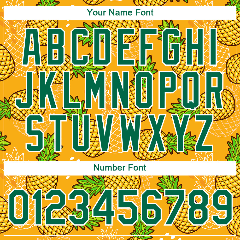Custom Gold Kelly Green-White 3D Pattern Design Tropical Pineapple Performance T-Shirt