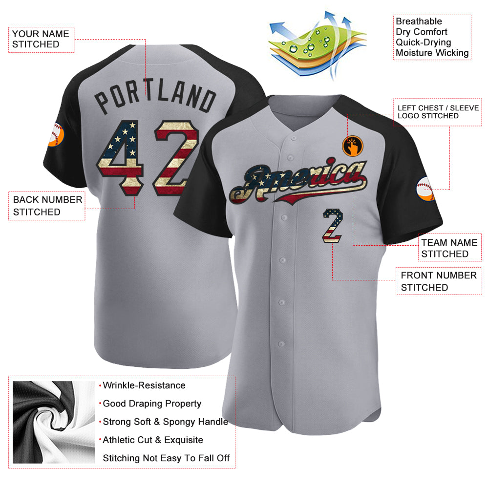 Custom Gray Vintage USA Flag-Black Authentic Raglan Sleeves Baseball Jersey