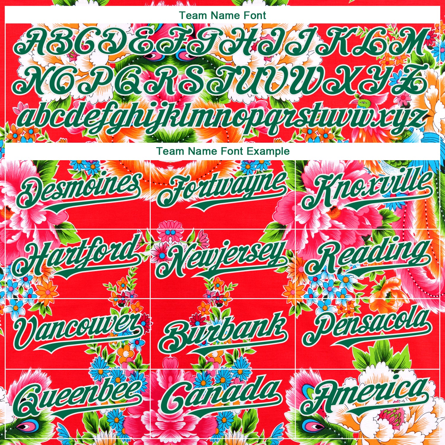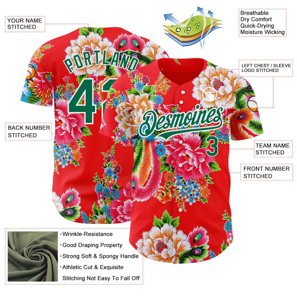 Custom Red Kelly Green-White 3D Pattern Design Northeast China Big Flower Authentic Baseball Jersey