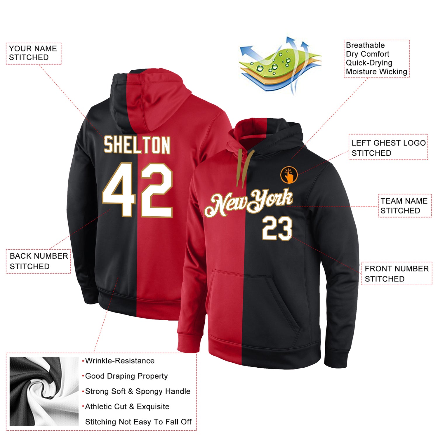 Custom Stitched Red White-Black Split Fashion Sports Pullover Sweatshirt Hoodie