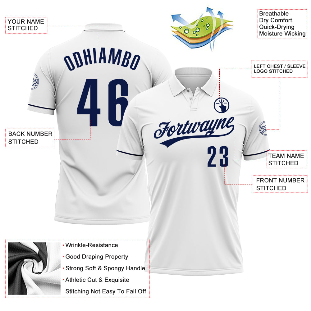 Custom White Navy Performance Vapor Golf Polo Shirt