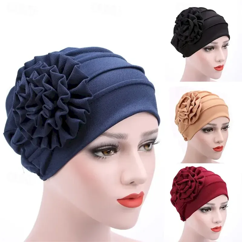 Women’s Hats Spring Summer Plain Color Floral Beanie Hat Muslim Stretch Turban Hat Cap Hair Loss Headwear Hijab Cap 2025